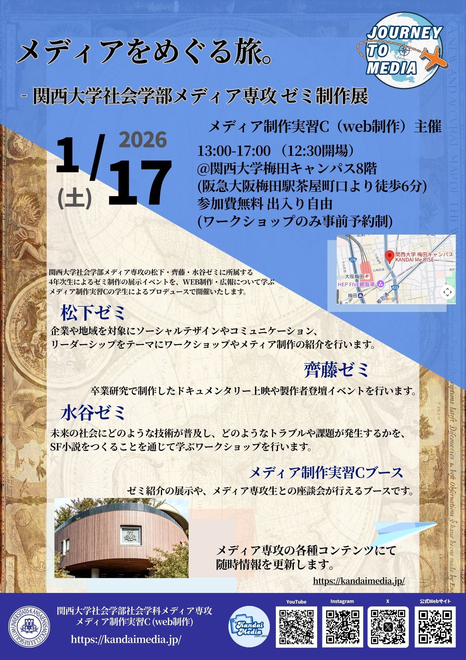 タイトル:「メディアをめぐる旅。-関西大学社会学部メディア専攻 ゼミ制作展」